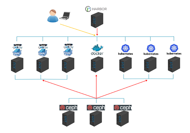 本课程我们就使用ceph做底层存储, 分别在docker节点,docker swarm集群,kubernetes集群中对接应用打造私有云盘与web应用。