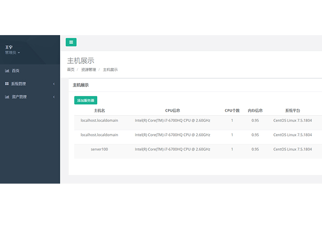 (8)实现资产主机管理模块,收集主机信息,并进行管理