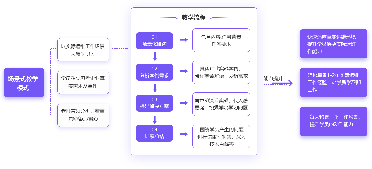 场景式教学模式,以解决企业中实际问题的场景为中心,通过引导学生分析需求,